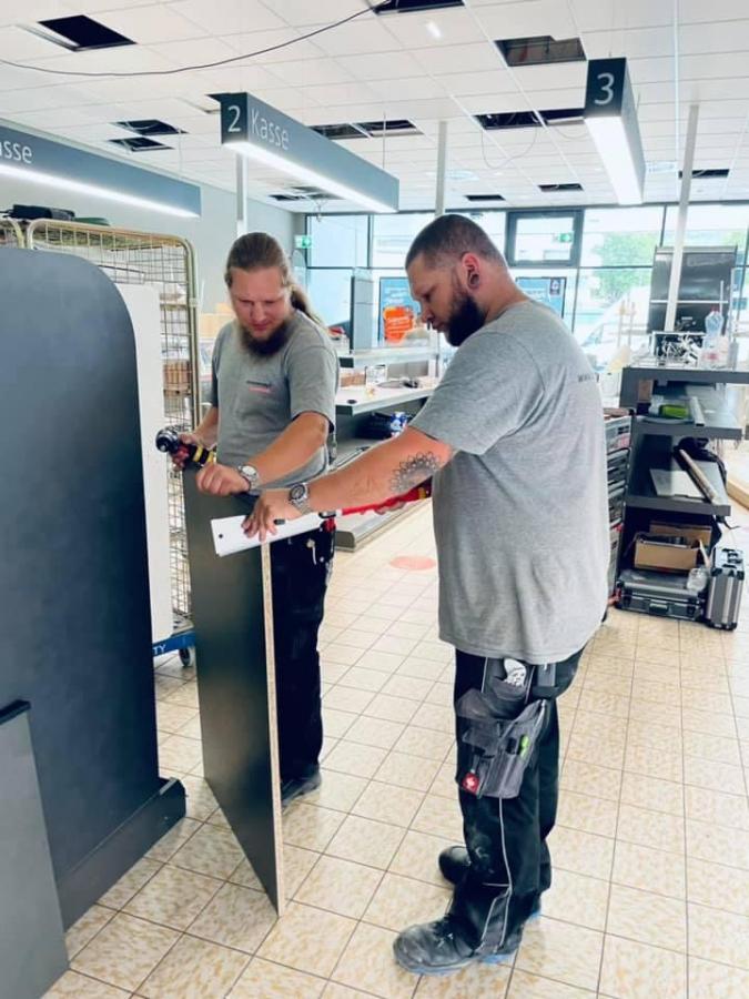 Wir supporten Sie mit unserem Team im Ladenbau und im Messebau, sowie bei Montagen jeglicher Art. Tatkräftig und flexibel.